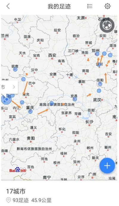 去过的不同城市都有足迹可循