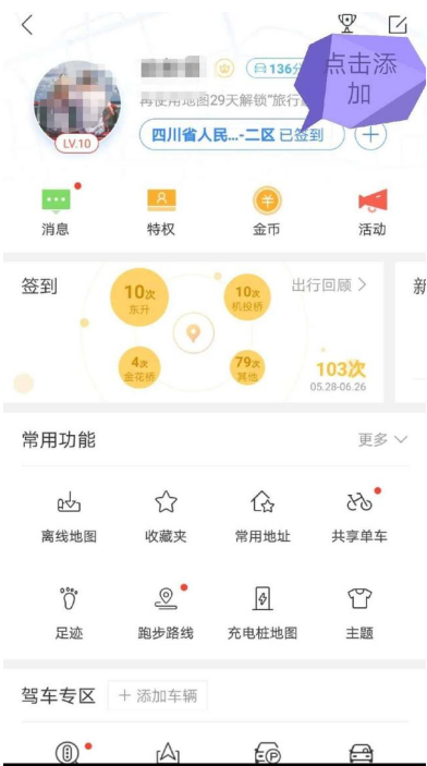 点击头像旁的“+”按钮签到,