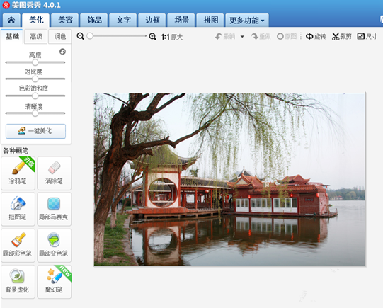 打开美图秀秀,打开需要制作成风景画的照片。
