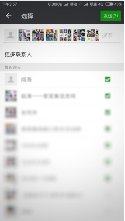 长按聊天信息,选择【发送给朋友】,然后点击右上角【多选】,勾选人名,就可以发送给多个人啦。