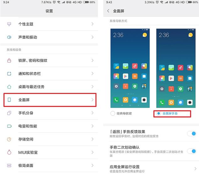 全面屏是目前智能手机的一大亮点,作为最早提出全面屏概念的厂家,小米也出了好几款全面屏手机。虽然号称全面屏,系统下面的导航栏却占据了一大部分空间,MIUI9系统中已经增加了全面屏手势功能,只需在【设置】-【全面屏】中,选择【全面屏手势】即可。