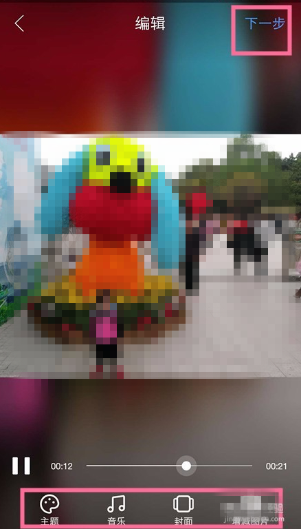 此时会弹出图集故事编辑页面,我们可以用编辑工具对图集故事进行【主题】、【音乐】、【封面】、【照片数量】的编辑,完成后点击【下一步】,
