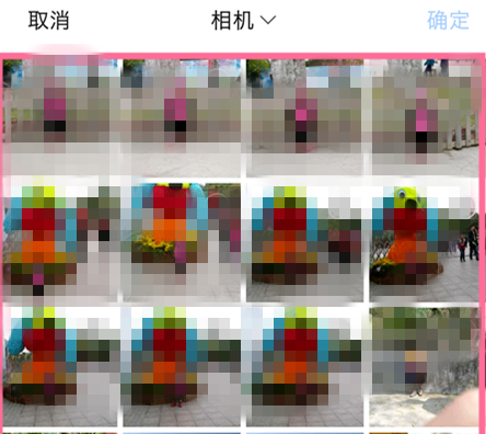 此时会弹出相机页面,在此页面选择要做成图集故事的照片,然后点击右上角的【确定】,