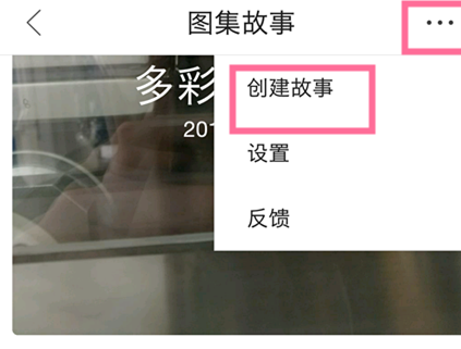 在下载文件页面,我们点击【图集故事】就会弹出图集故事页面,点击右上方菜单图标,此时会弹出一个页面,我们点击【创建故事】,