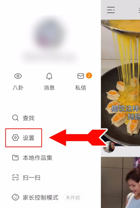 首先打开快手APP,进入主页,点击左上角进入设置界面,