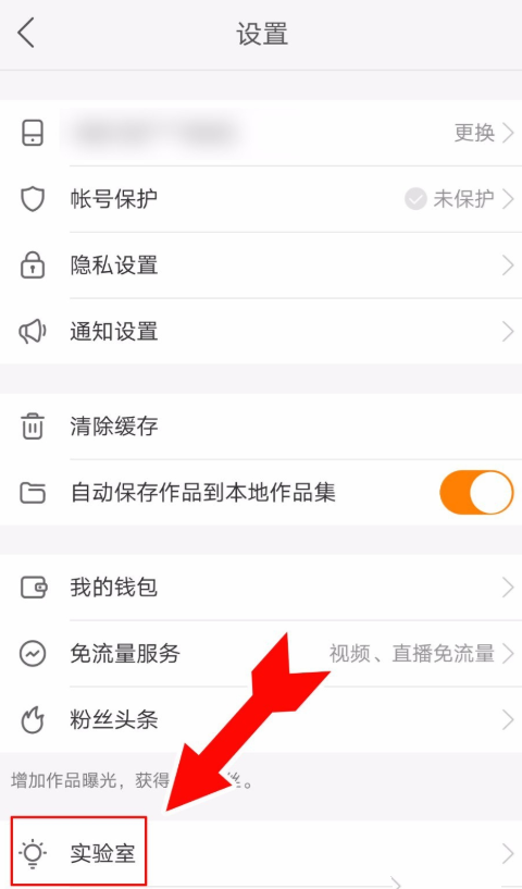 在设置页面下方找到实验室,点击并进入,