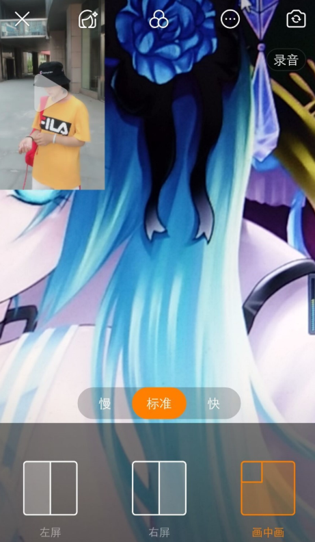 录制视频的时候还可以选择视频位置,有左屏选择、右屏以及画中画选择。