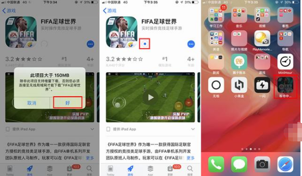 首先,点击界面框中的「好」,会出现一个下载的圈圈,但并没有在下载;桌面也会出现灰色的 app 图标。
