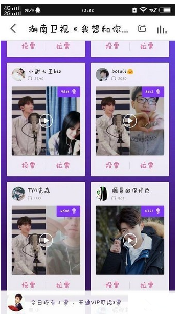 投票环节是很重要的,如果你的票数越高,你的作品就会被《我想和你唱》栏目组看到,而且你还要有唱歌的实力,这样才有机会参加节目。