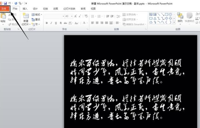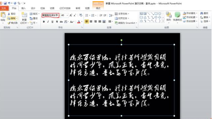 下面就给大家讲解怎样嵌入字体,首先将我们编辑好的文字设置为“毛体”,