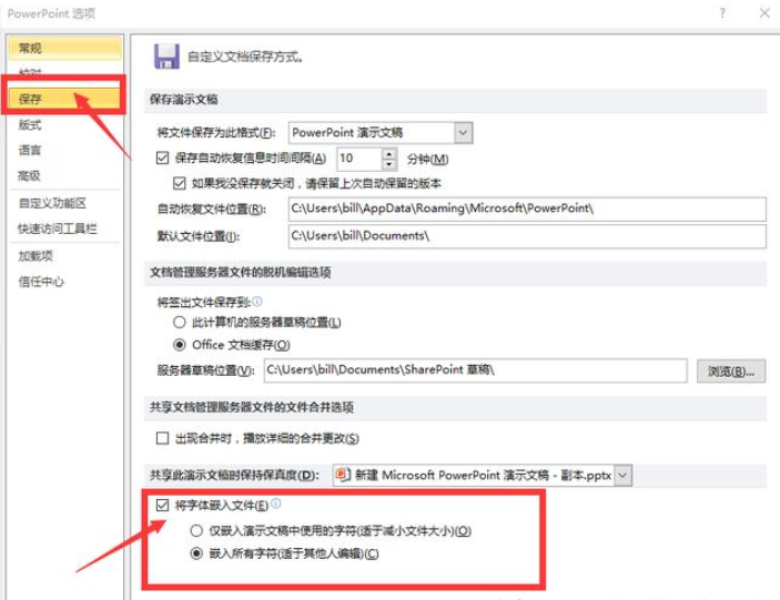 设置好之后进行保存,你再把PPT文档放在别人的电脑上播放,这时字体就不会变样了。