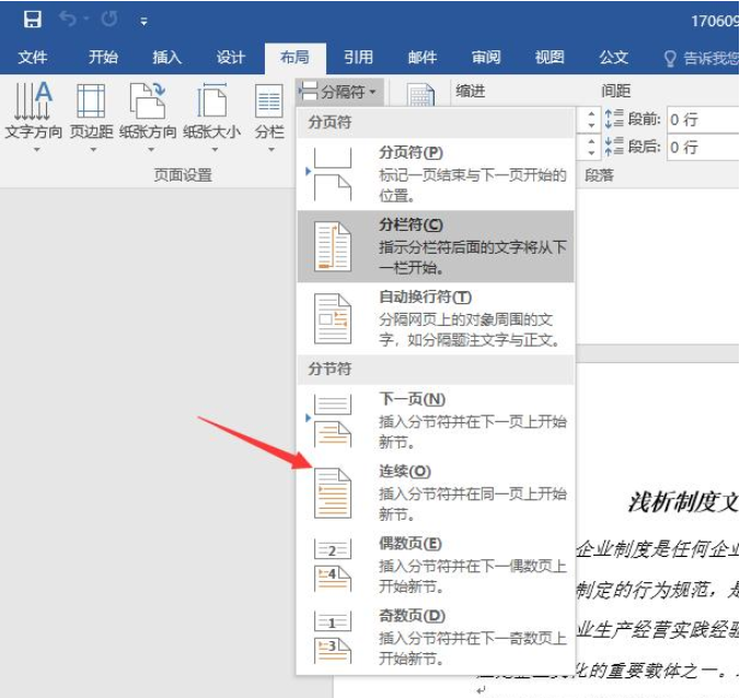 点击【分隔符】→【分节符】→【连续】,然后下一页改页眉前,按一下“同前”钮,之后做的改动就不影响前面的了。