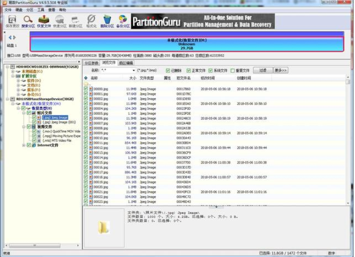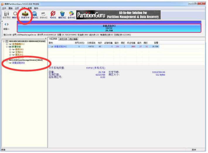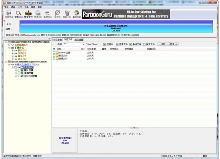 很多时候,出现这种情况并不是说U盘坏掉了,只是引导文件出错了,其实里面的数据还在,用PartitionGuru这款软件就能完整找回,具体操作如下。