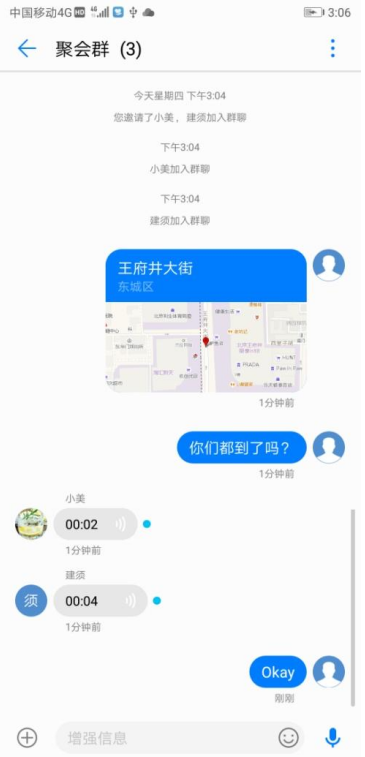 想约个饭,却不知道详细地点?只需要使用增强信息发送地理位置信息给对方就可以轻松搞定。点击地理位置可以使用导航前往,方便又快捷!
