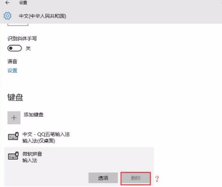 6、在添加微软五笔之后,现在拼音输入法就可以删除了。