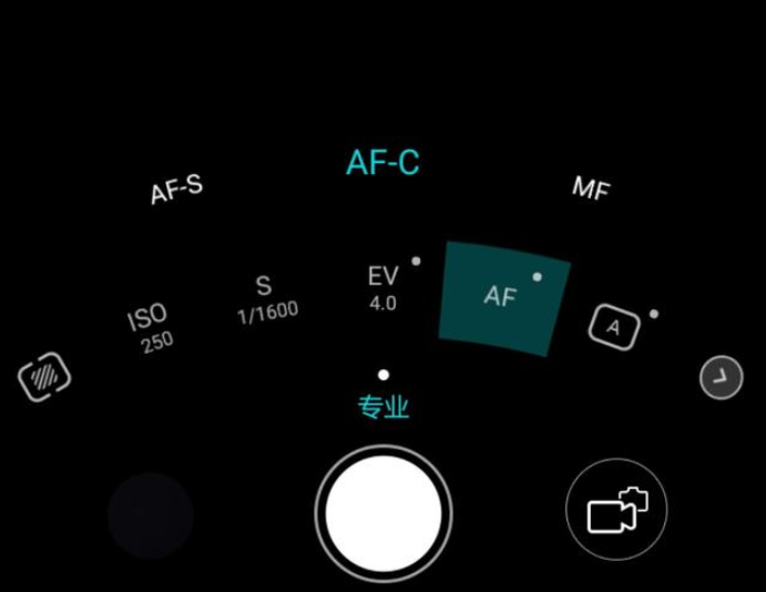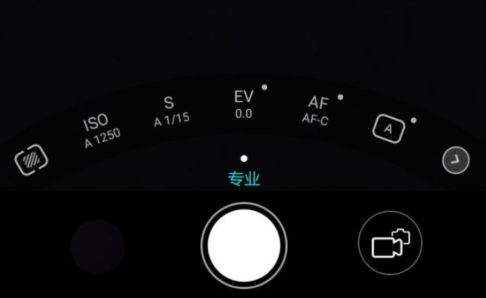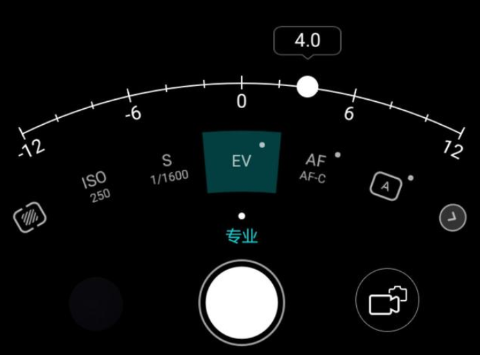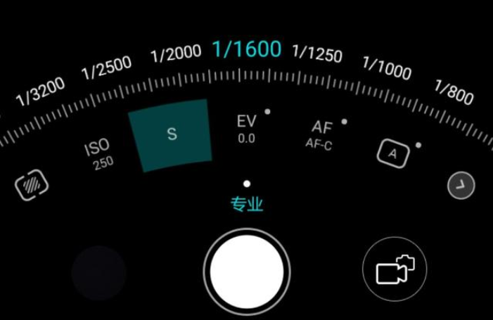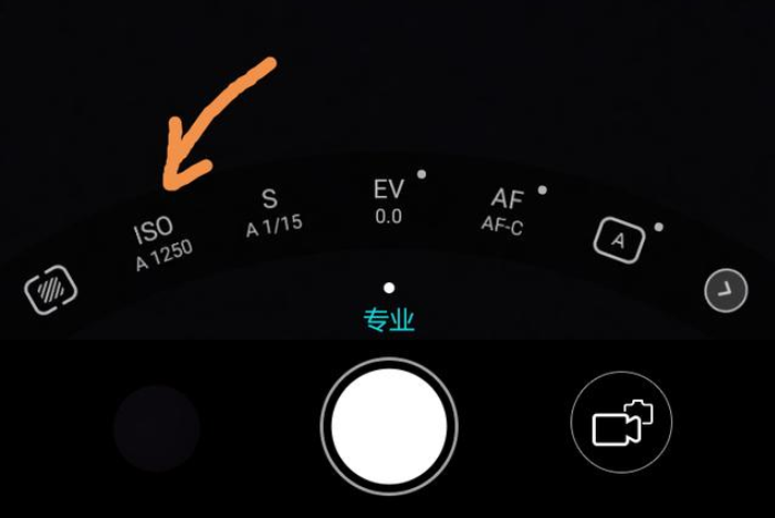 点击专业模式,我们看到在相机快门按键的上方有一排参数。