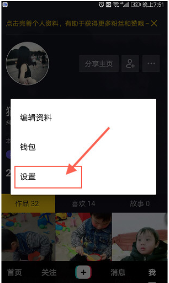 打开抖音App,点击右下角【我】,点击右上角【…】,如下图;