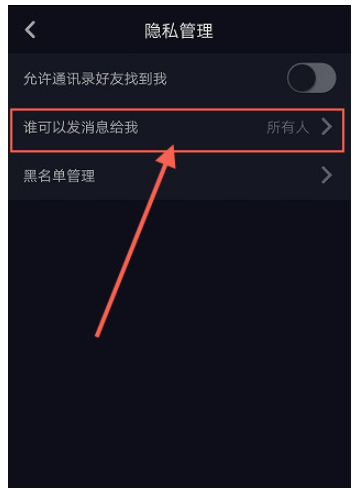 找到【谁可以发消息给我】,选择【黑名单管理】,把想屏蔽的人添加到黑名单就OK了。