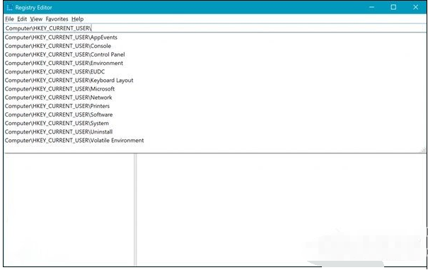 在输入注册地址栏时会出现下拉列表,以帮助完成路径的下一部分。可以按Ctrl + Backspace删除上一个“单词”,这样可以更快地备份工作(Ctrl + Delete将删除下一个单词)。