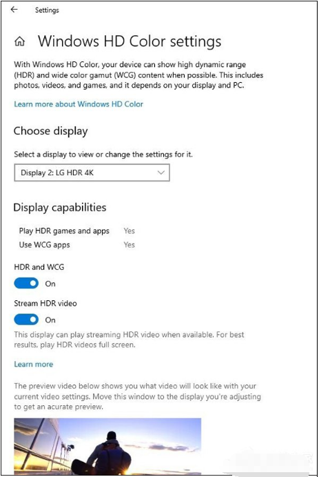 “显示设置”下提供了一个新的Windows HD Color页面!支持Windows HD Color的设备可以显示高动态范围(HDR)内容,包括照片,视频,游戏和应用程序。“显示设置”中的“Windows HD颜色设置”页面现在报告系统的HD颜色功能,并允许在功能强大的系统上配置HD Color功能。