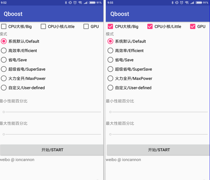 Qboost主界面,可以分别调节CPU核心或者GPU
