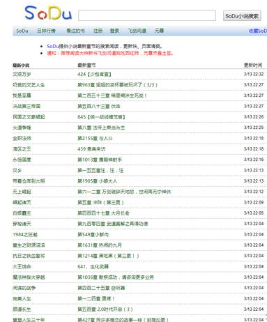 SoDo同样是一个整体体验不错的网站,这个网站主要针对电子书籍的小说,SoDo的主要特点就是更新很快,并且提供很多最新章节的小说。