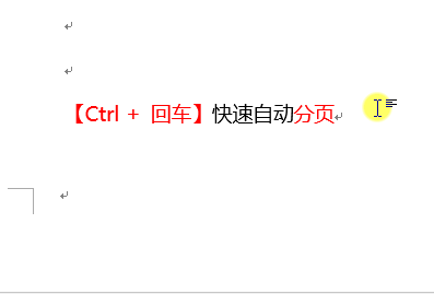方法:光标定位到需要分页的位置,【Ctrl + 回车】快速自动分页。