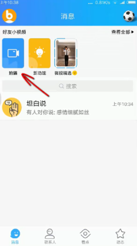 首先在QQ主页这里拍摄一个小视频发送,然后查看视频点击右上角分享复制链接,