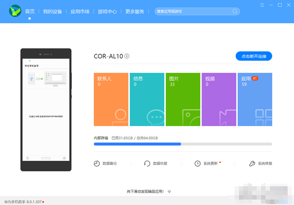 在电脑端安装华为手机助手「HiSuite」后,用户可根据自身需求将手机内容备份到本地电脑中。