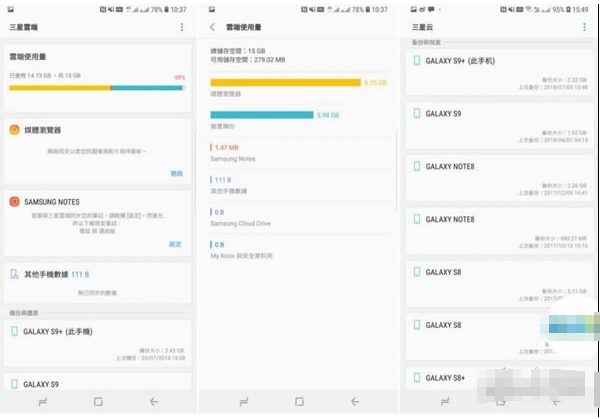 三星在手机系统内默认提供了15GB的「三星云」云存储空间,但不可扩容。