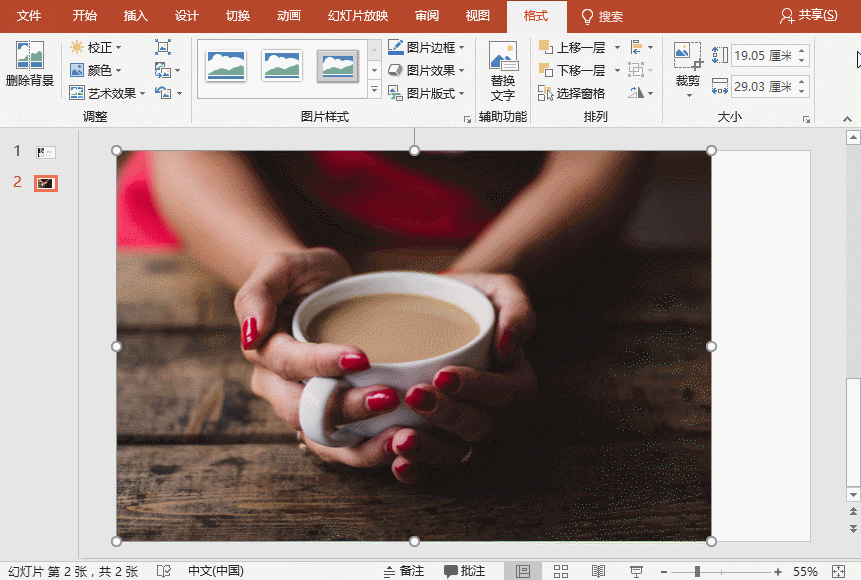 (1)选择图片,按Ctrl+C、Ctrl+V复制一张相同图片。