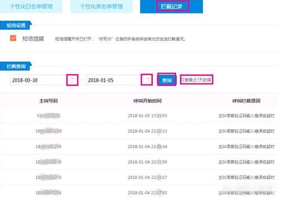 • ·黑名单:直接进行拦截,可在拦截记录中查询拦截情况。