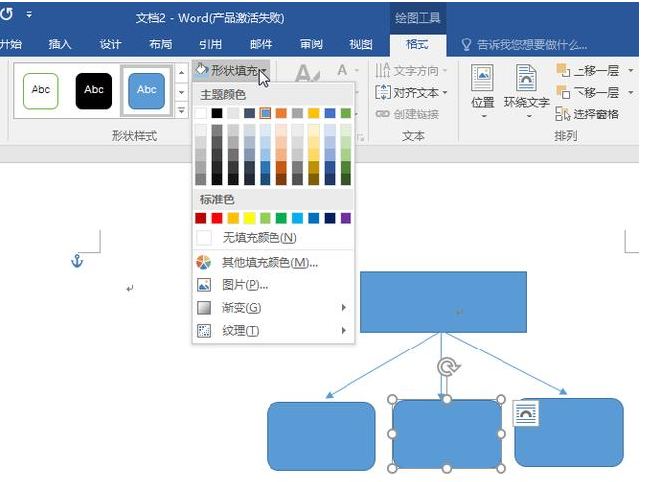 更改颜色:绘图工具(格式)—形状填充—选择喜欢的颜色
