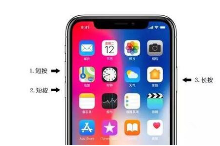 左手按一下音量+键松手,立刻按一下音量-键松手;右手立刻按住侧键不松手,直到屏幕黑掉松手,等待苹果logo重新出现,强制重启成功。