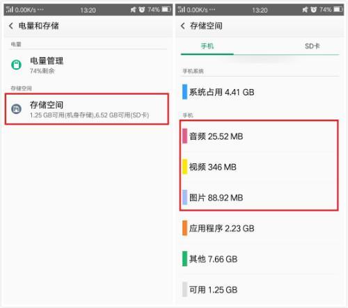 实在不行,就只能删除音乐、图片、视频等文件了。(纯属下下策)