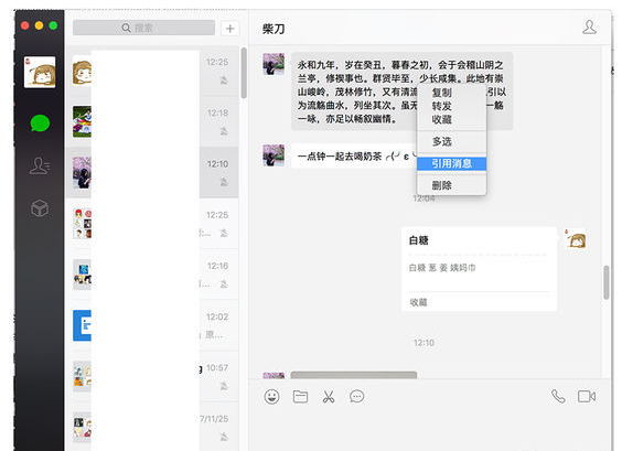 “引用回复”估计很多人都很陌生,因为它在微信PC端才会有,我们在微信群中想回复某人的消息,又害怕他看不见,就会@他,这里的“引用回复”也有相同作用。