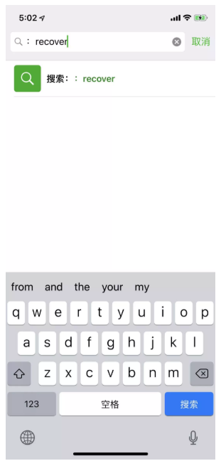 我们在微信添加朋友界面搜索【:recover】(记得前面一定要加冒号),