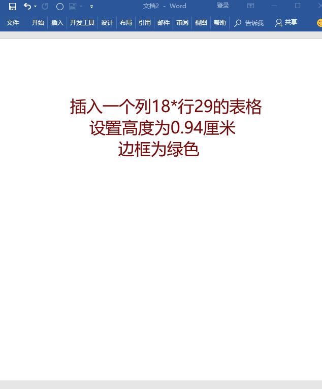 1、打开Word文档,插入18*29行表格,设置高和宽为0.94厘米,边框为绿色。