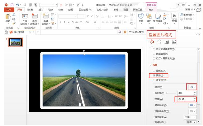 插入图片——设置图片格式——线条——实线——宽度20磅。