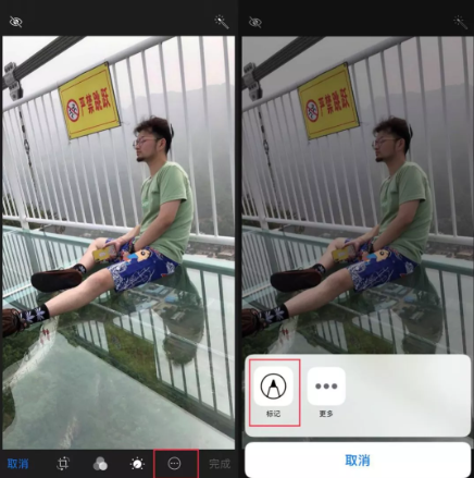 进入编辑界面,点击下方的图标,选择标记,
