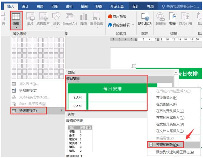 当我们不再使用表格模板,可以右键——整理和删除。