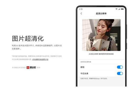 面对那些模糊不已的图片总是感到头疼,MIUI10对此上线了一个强大功能,叫做超清分辨率。原理是利用AI技术放大图片尺寸,并自动补足图像细节,让图片浏览更清晰,可以说是实实在在的黑科技了。