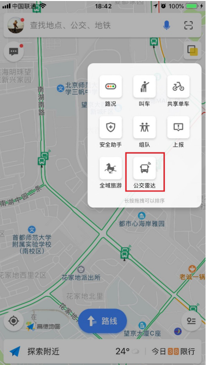 为了方便广大市民坐公交,高德地图推出了实时公交功能,在高德地图中可以实时获悉公交车辆的运营情况。打开手机高德地图,在首页点击“更多选项”的图标,然后点击“公交雷达”就可以实时查看公交车运行状态。