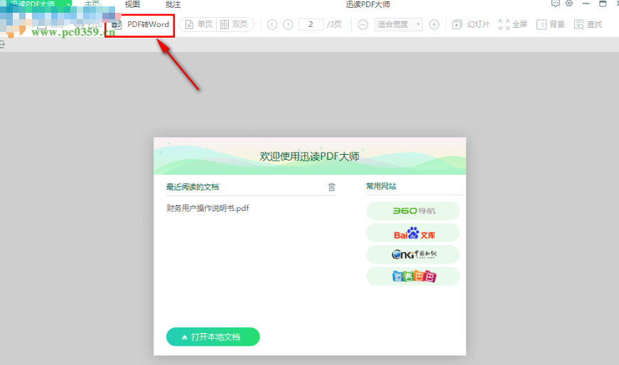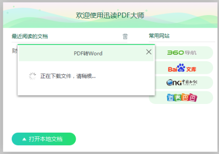 4、安装完成后,进入了如下所示的讯读PDF转Word的操作界面。