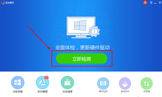 2、打开软件,显示出界面后,接下来我们点击中间的“立即检测”选项,如下图: