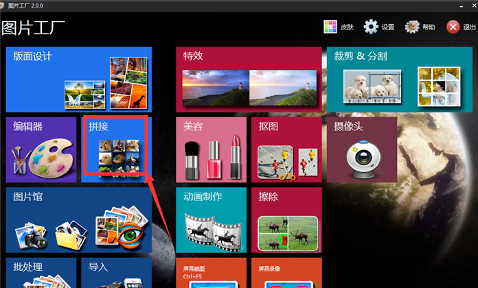 打开图片工厂,在页面点击“拼接”功能,
