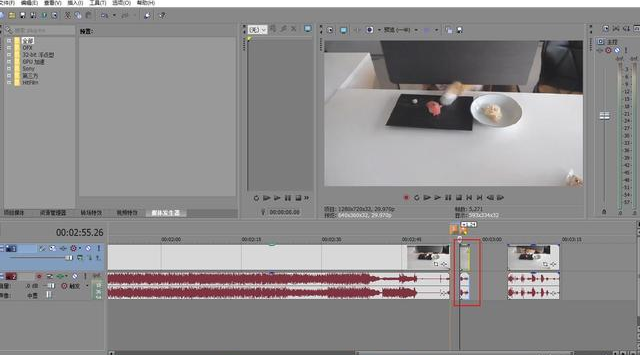 按下Delete键后,可以看到,选中的区域被删除了,这在使用Vegas剪辑中很实用。