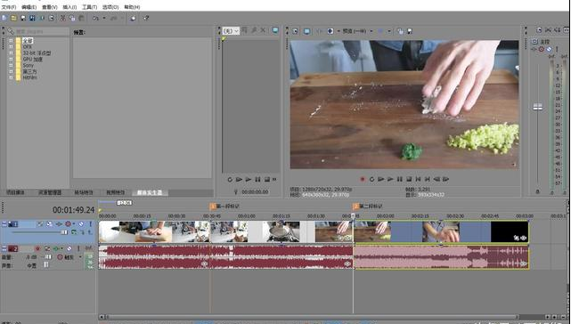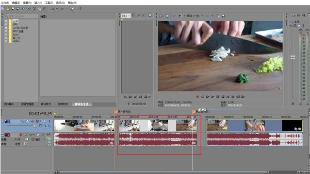 另外Vegas还有一个特别好的快捷键也非常实用,那就是Delete键,我演示一下,我标记好视频节点后鼠标选中区域