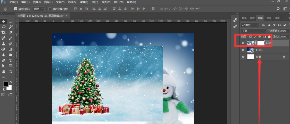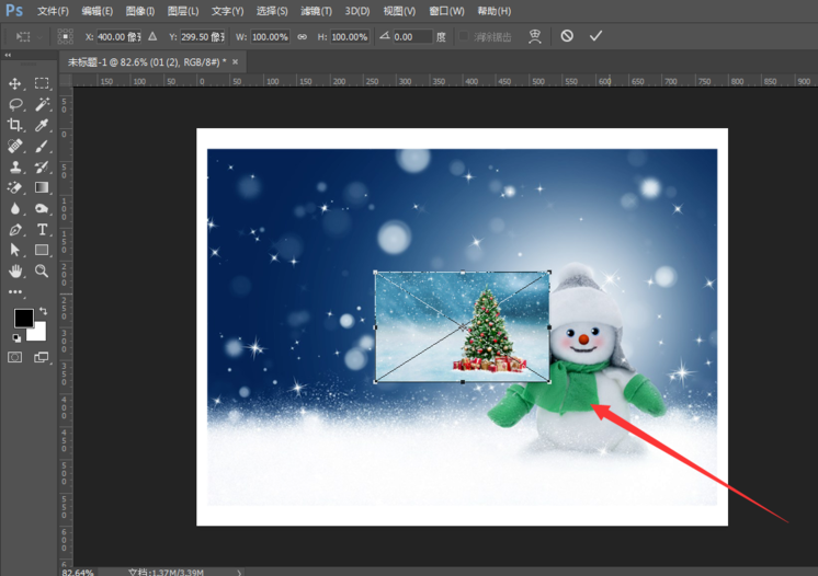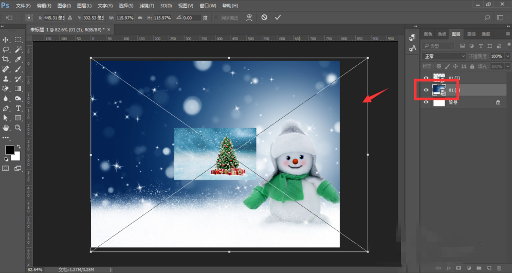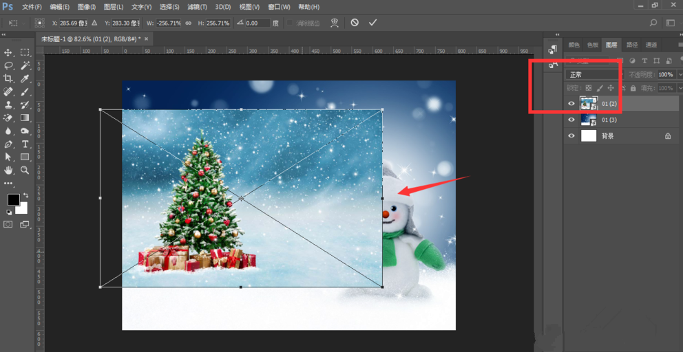然后再选择上面的图片,变换后调整图片大小和位置。