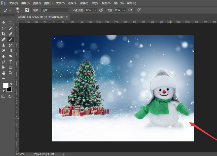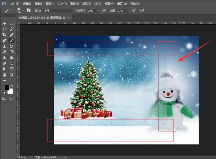 然后使用画笔在图形交接处涂抹,如下图所示。
